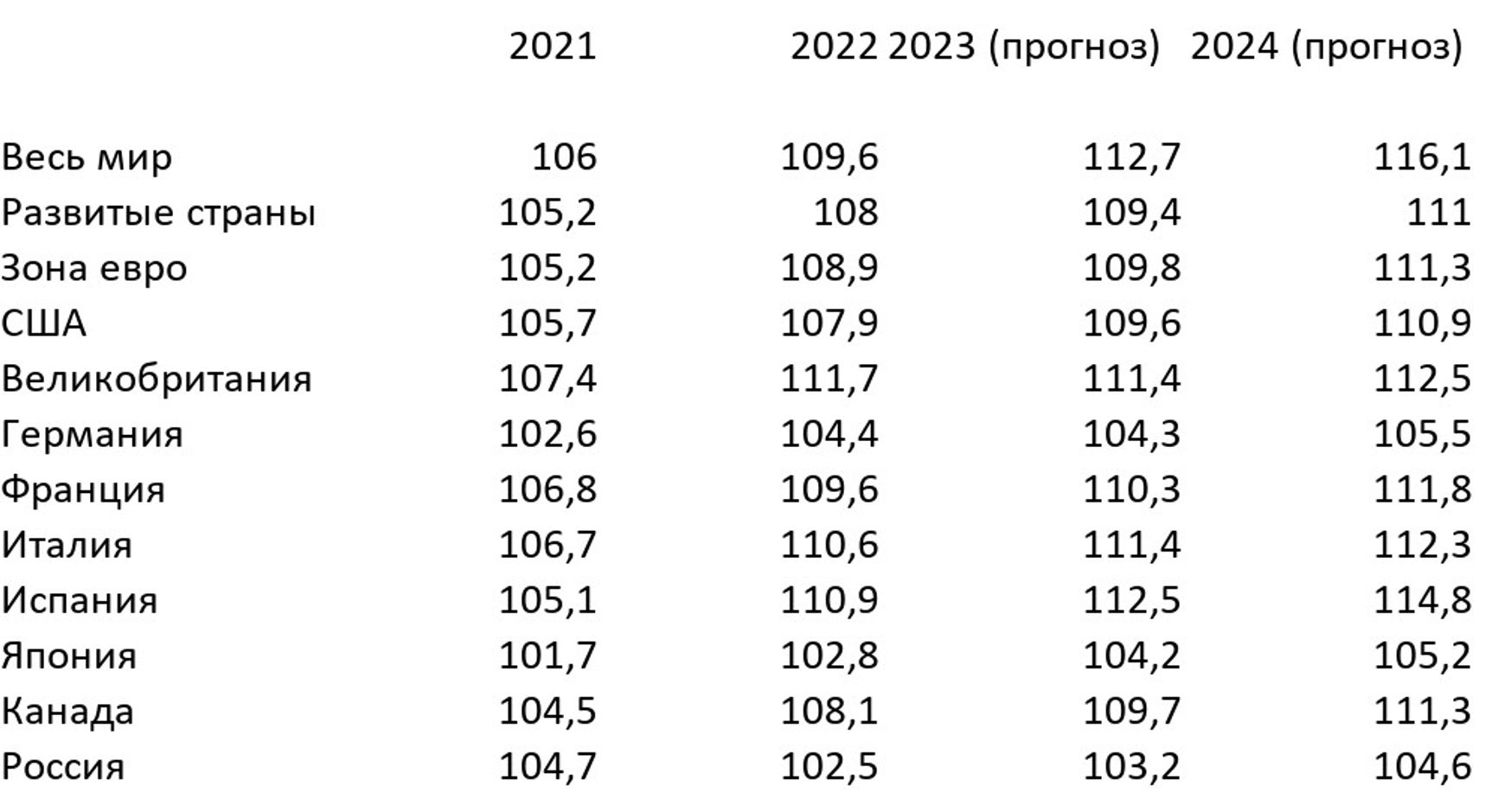 В таблице, составленной на основе данных МВФ, представлен реальный ВВП в процентах к уровню 2020 года: