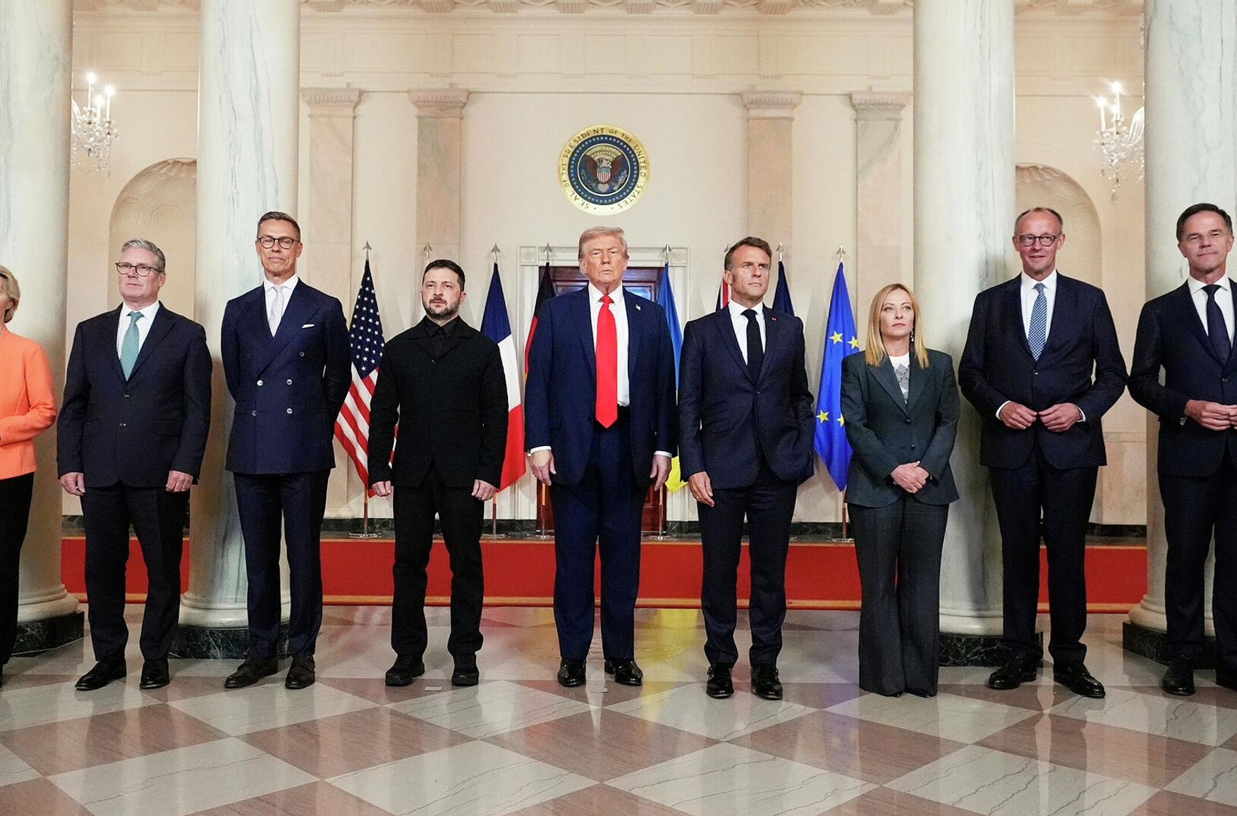По словам автора, прием европейских лидеров также резко контрастировал с помпезностью и торжественностью визита Владимира Путина на Аляску, который состоялся 15 августа. «Президент США не стал лично приветствовать ни одного из них», — пишет РИА «Новости».