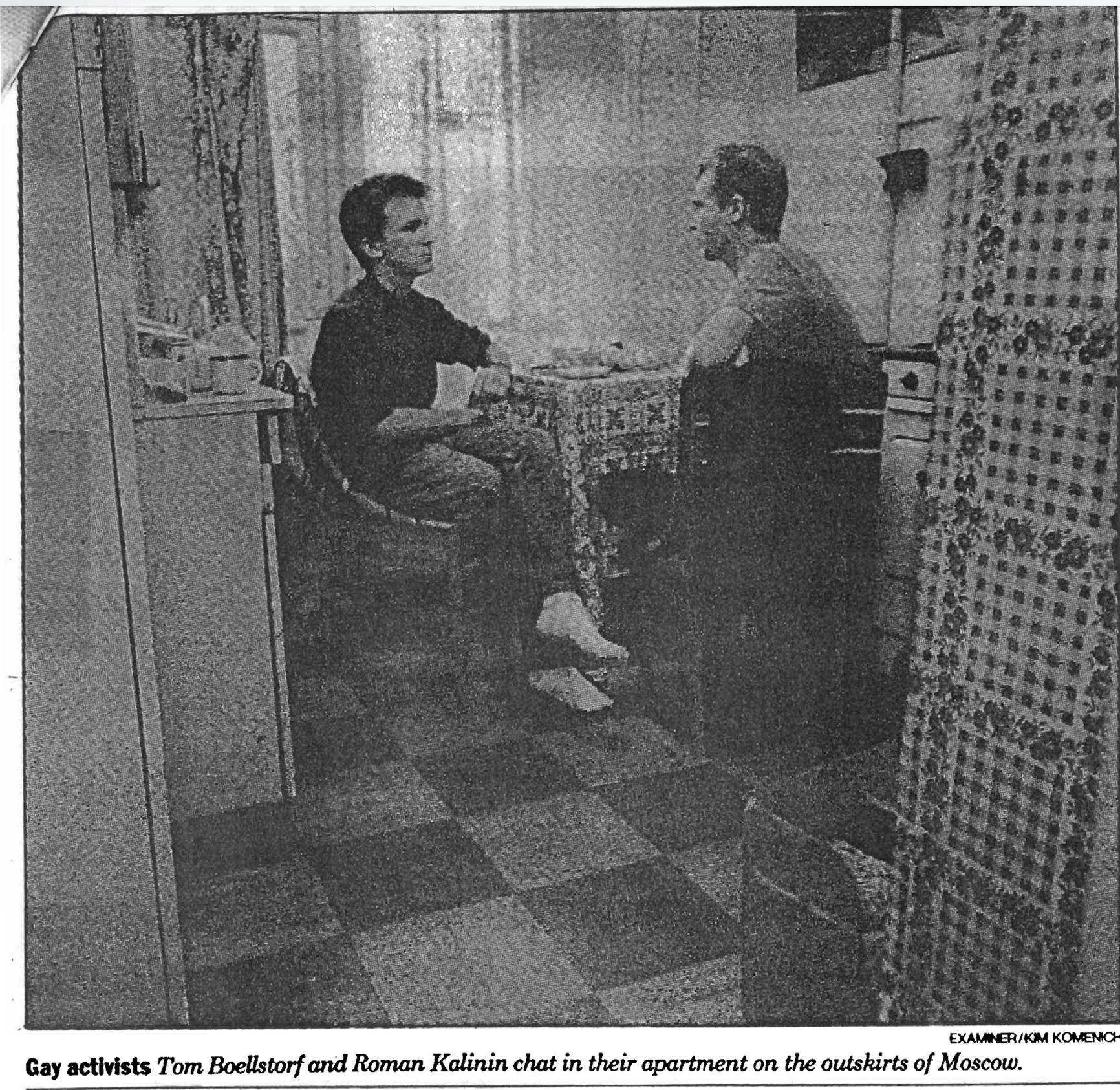 Kalinin was also deeply frightened. Realizing that the coup leaders would begin arresting public activists, he understood he would be among the first to be rounded up. That same day, he moved in with Thomas Boelstorff, his ally and a gay activist from the U.S. who had helped him with the creation of MOLG and the development of the Tema newspaper.