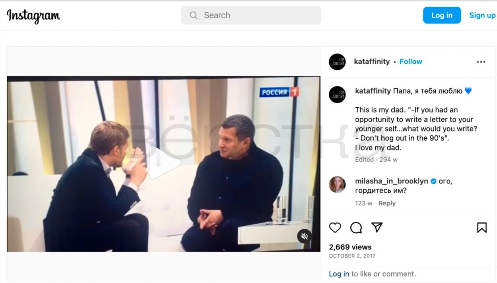 Solovyova declined to comment on her relationship with her father and her creative work, telling Verstka that she was worried about the safety of the participants in her projects.