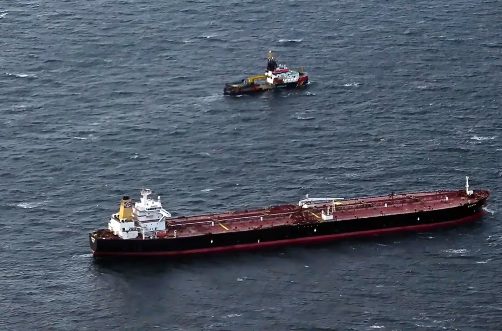 Russia's former “shadow fleet” tanker Eventin, confiscated by Germany’s federal government in March 2025, pictured off the coast of the island of Rügen. Photo: Stefan Sauer / picture-alliance / AP