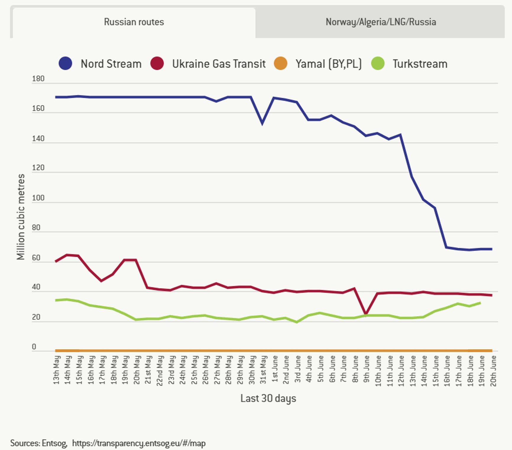 As Miss Marple used to say, “I'm still willing to believe in one coincidence, but not several at once, no way.” The average daily supply volume has dropped below 100 million cubic meters.