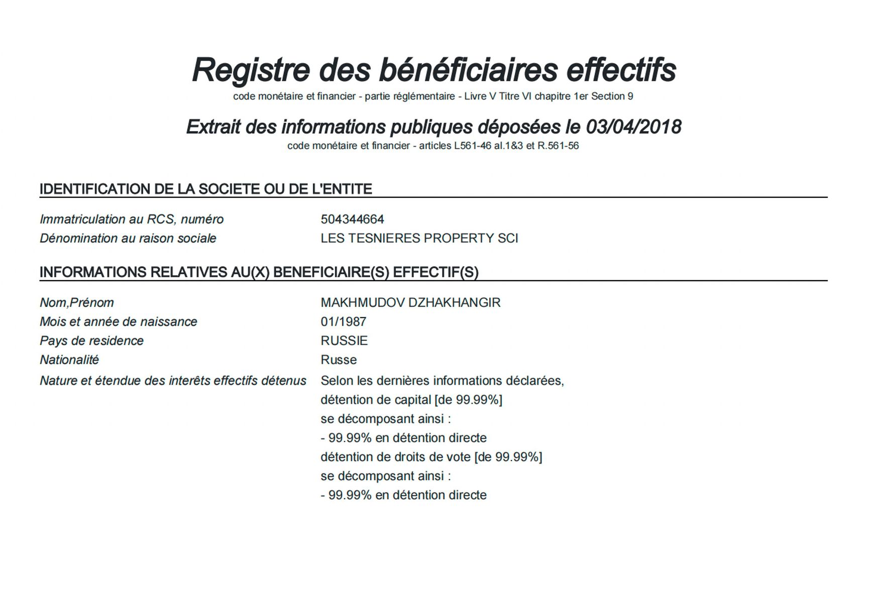 Именно во Франции поселились семьи Махмудова и Бокарева. The Insider изучил их имения, а заодно нашел новых родственников российских олигархов. Сын Махмудова Джахангир, согласно коммерческому реестру Франции, является бенефициарным владельцем компании Les Tesnieres Property SCI. На нее записаны земли в регионе Солонь.