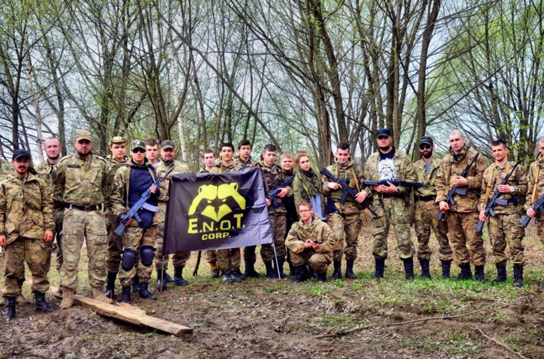 По данным следствия, в организованную преступную группировку входили восемь членов так называемой ЧВК «Е.Н.О.Т.», причем часть из них являлись сотрудниками ФСБ и ГРУ России. Одним из руководителей группировки, по данным участников, является действующий военнослужащий ГРУ Минобороны Денис Карабан. Он якобы проводил с членами банды тренировки по рукопашному бою. Карабан служил в Нижнем Новгороде примерно до 2017 года. При этом неоднократно помогал «Е.Н.О.Т.», когда организация выезжала в «гуманитарные командировки» на Донбасс.