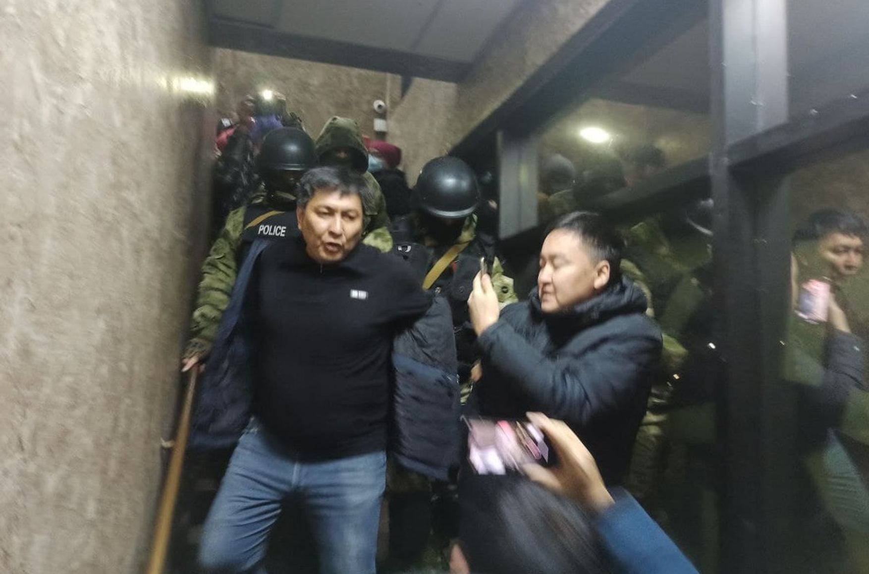 После обыска и изъятия оборудования силовики задержали Болота Темирова, сообщает Kaktus.media. По данным издания, Темирова отвезли в ГУВД Бишкека.