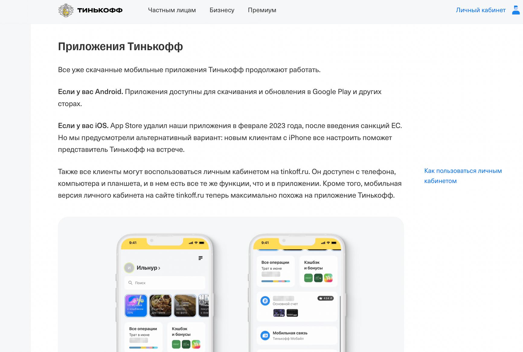 «Из-за ограничений Google приложения Тинькофф пропали из Google Play. Рассказываем, что важно знать обладателям Android-устройств. Уже скачанные приложения продолжат работать в обычном режиме. Новым клиентам настроить доступ к дистанционному обслуживанию поможет представитель Тинькофф на встрече для получения банковской карты или другого продукта», — отмечается в заявлении.