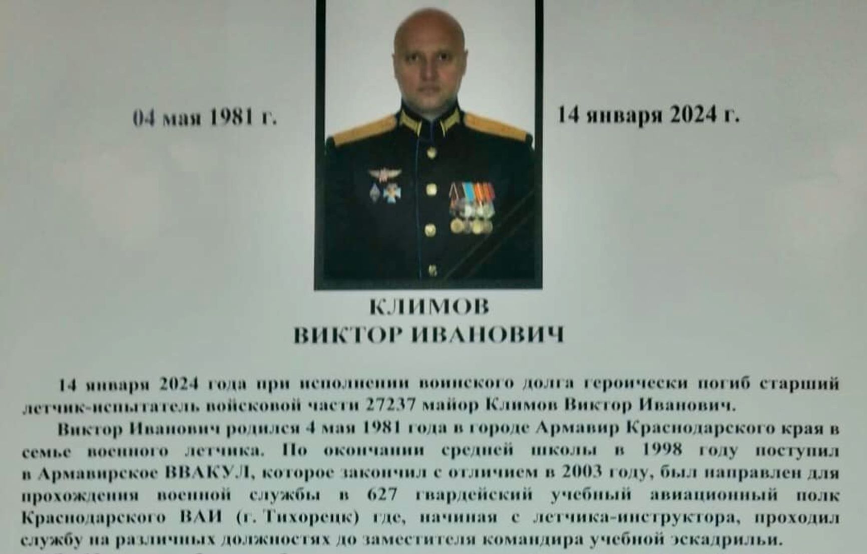 Кроме того, стало известно о гибели командира Ил-22, также пораженного над Азовским морем. По некоторым данным, майор Виктор Климов скончался от осколочных ранений еще в воздухе, после чего самолет посадил второй пилот, который также был ранен.