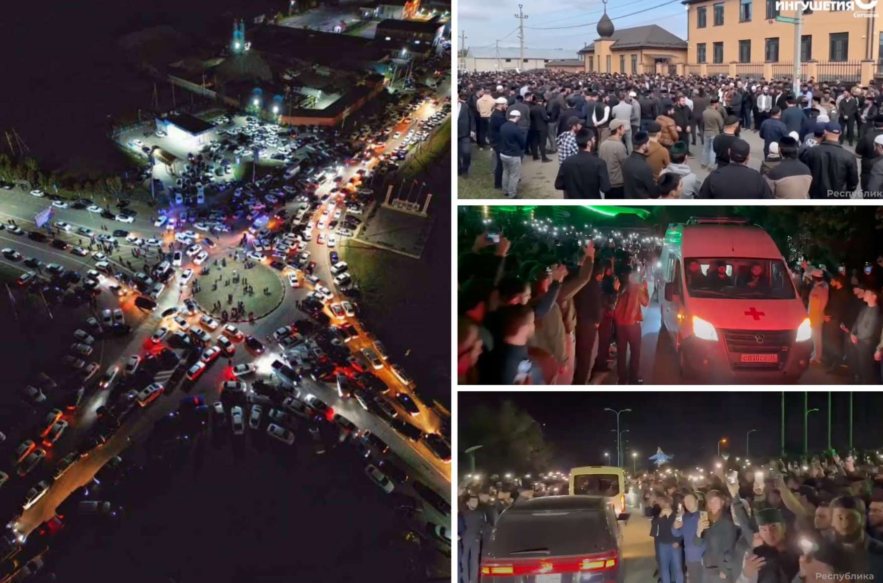 Тысячи жителей Ингушетии вышли проститься с двумя уроженцами республики, убитыми в ходе перестрелки в Wildberries. Самолет с телами 41-летнего Адама Алмазова и 31-летнего Исламбека Эльмурзиева приземлился в ночь на субботу в аэропорту «Магас» — тысячи жителей республики вышли его встретить, а утром собрались на похороны.