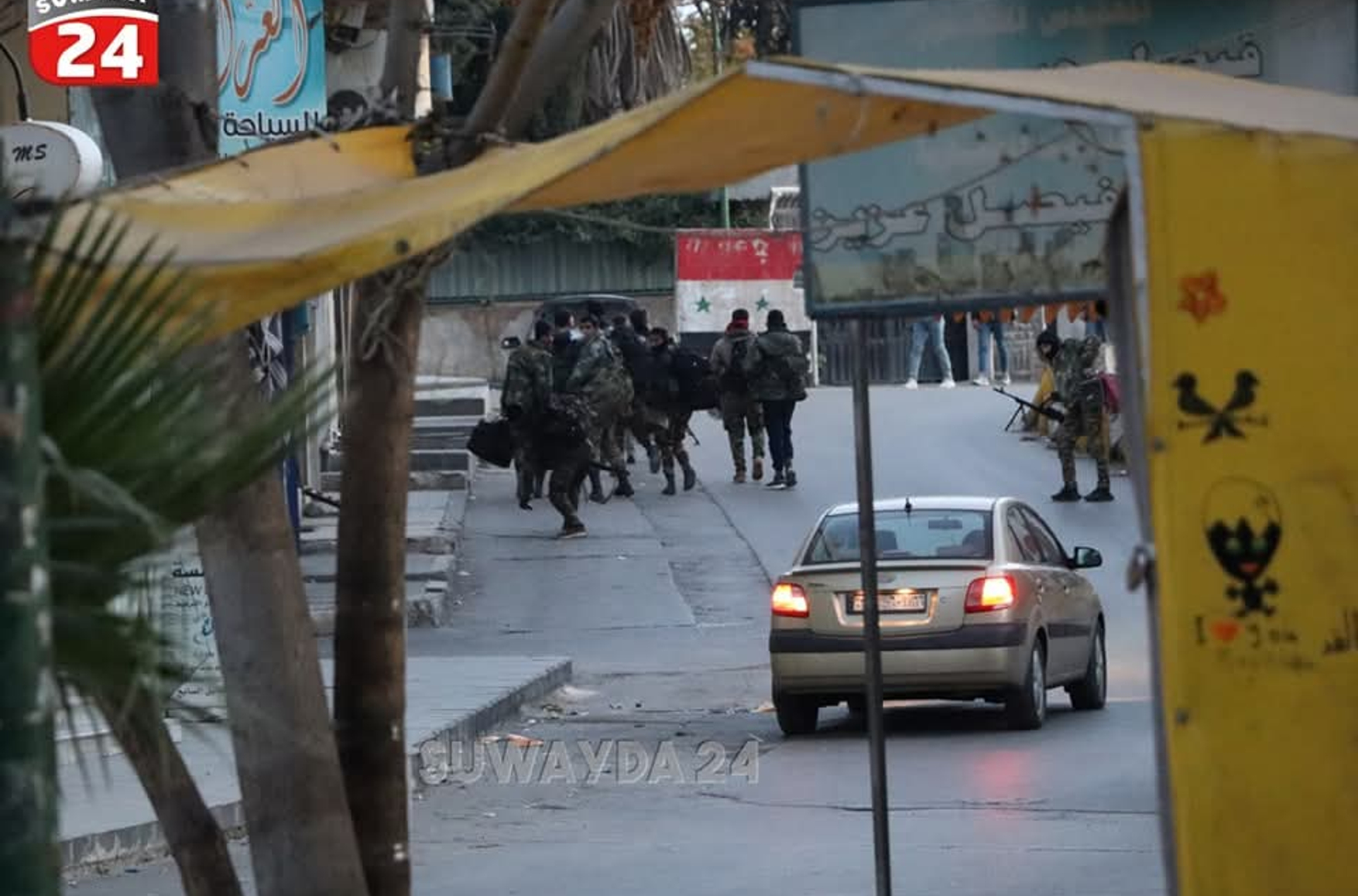 Сирийские повстанцы вошли в город Сувейда, сообщил журналист Томас ван Линге со ссылкой на местное СМИ Сувейда-24. После этого турецкий журналист Рагип Сойлу опубликовал видео, как он утверждает, со зданием мухафазы, с которого срывают флаги и портреты Башара Асада.